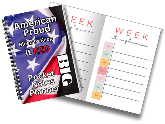 Big Pocket Notes Planner American Flag Weekly-White Interior at a Glance 6 x 9 Inches