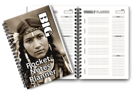 Big Pocket Notes Planner American Indian Woman-7 Weekly Cream Color 6 x 9 Inches